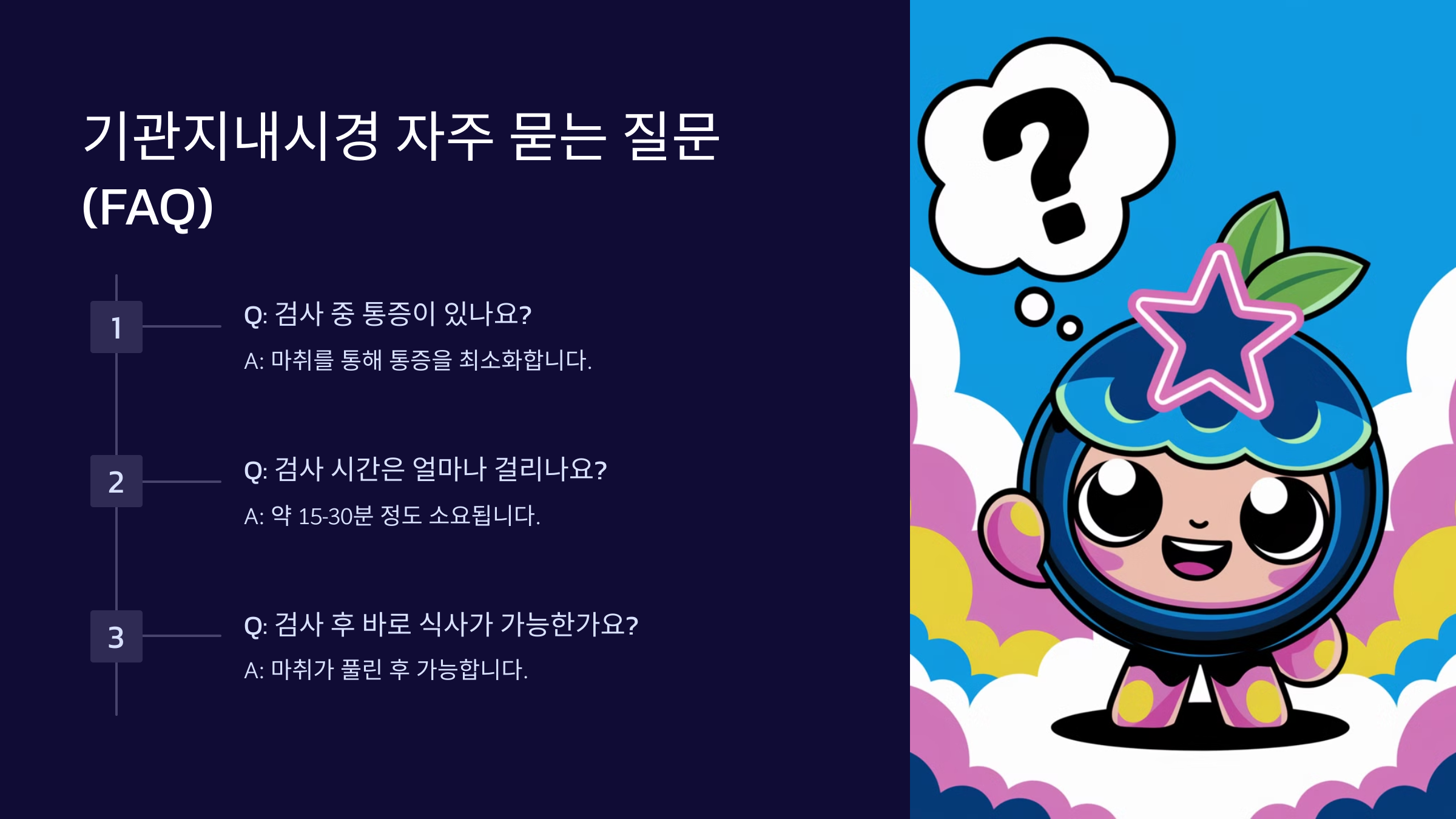 이제 기관지내시경에 대한 궁금증을 해소할 차례예요! 많은 분들이 자주 묻는 질문과 답변을 모아봤어요. ✨