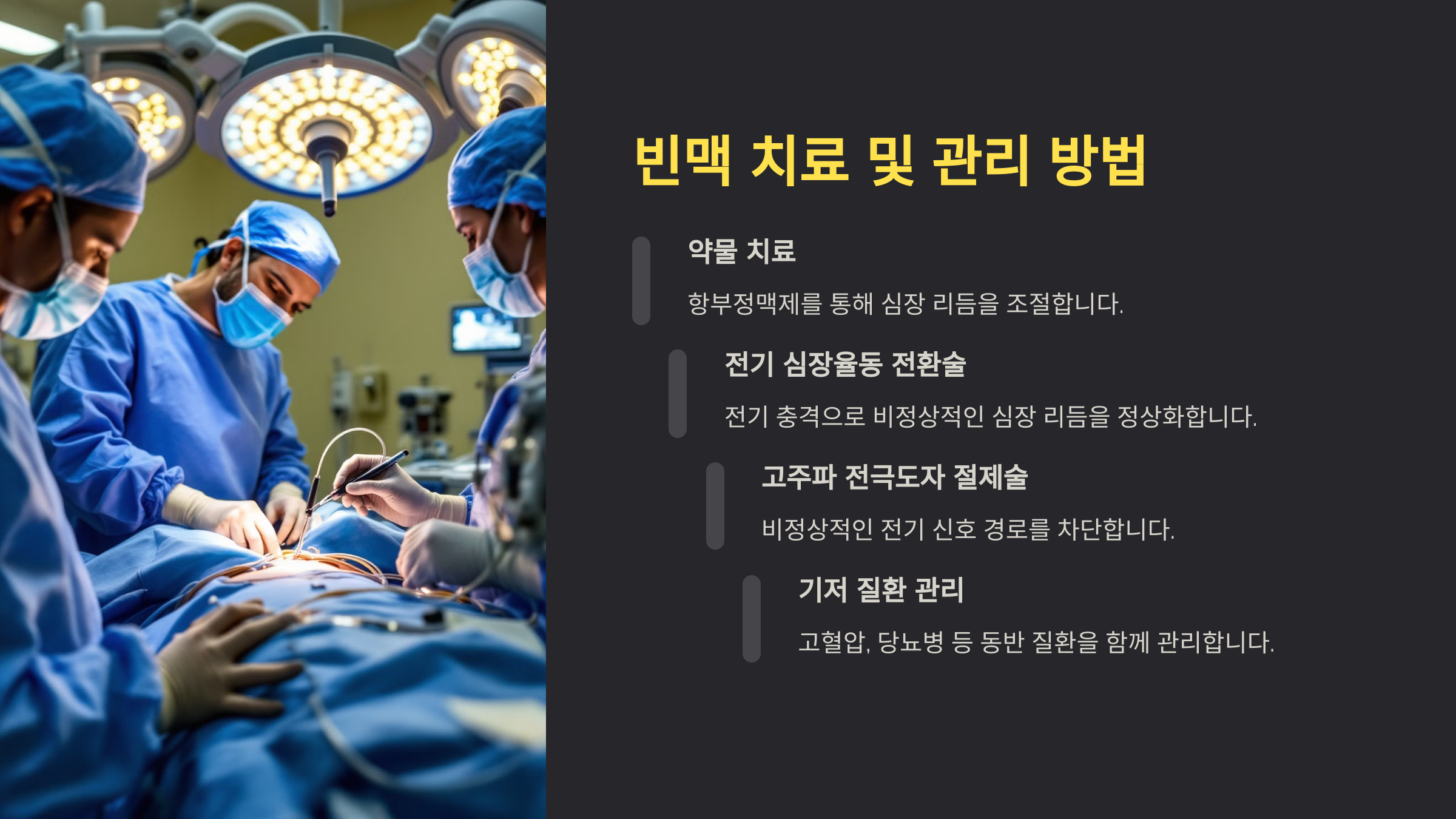 진단이 끝났다면, 이제 빈맥을 어떻게 치료하고 관리할 수 있는지 알아볼까요? 💊