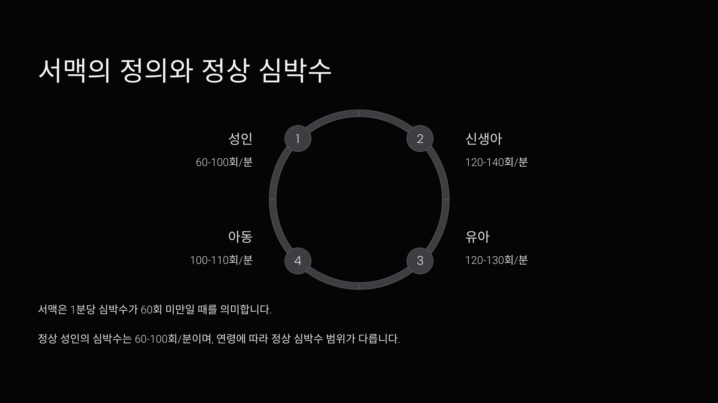 서맥(Bradycardia)이란 심박수가 정상 범위보다 낮아지는 상태를 말해요. 일반적으로 성인의 정상 심박수는 1분당 60~100회인데, 서맥은 1분당 60회 미만으로 감소하는 것을 의미해요. 하지만 운동선수처럼 심장이 효율적으로 기능하는 경우, 50회 이하라도 건강에 문제가 없을 수도 있어요.