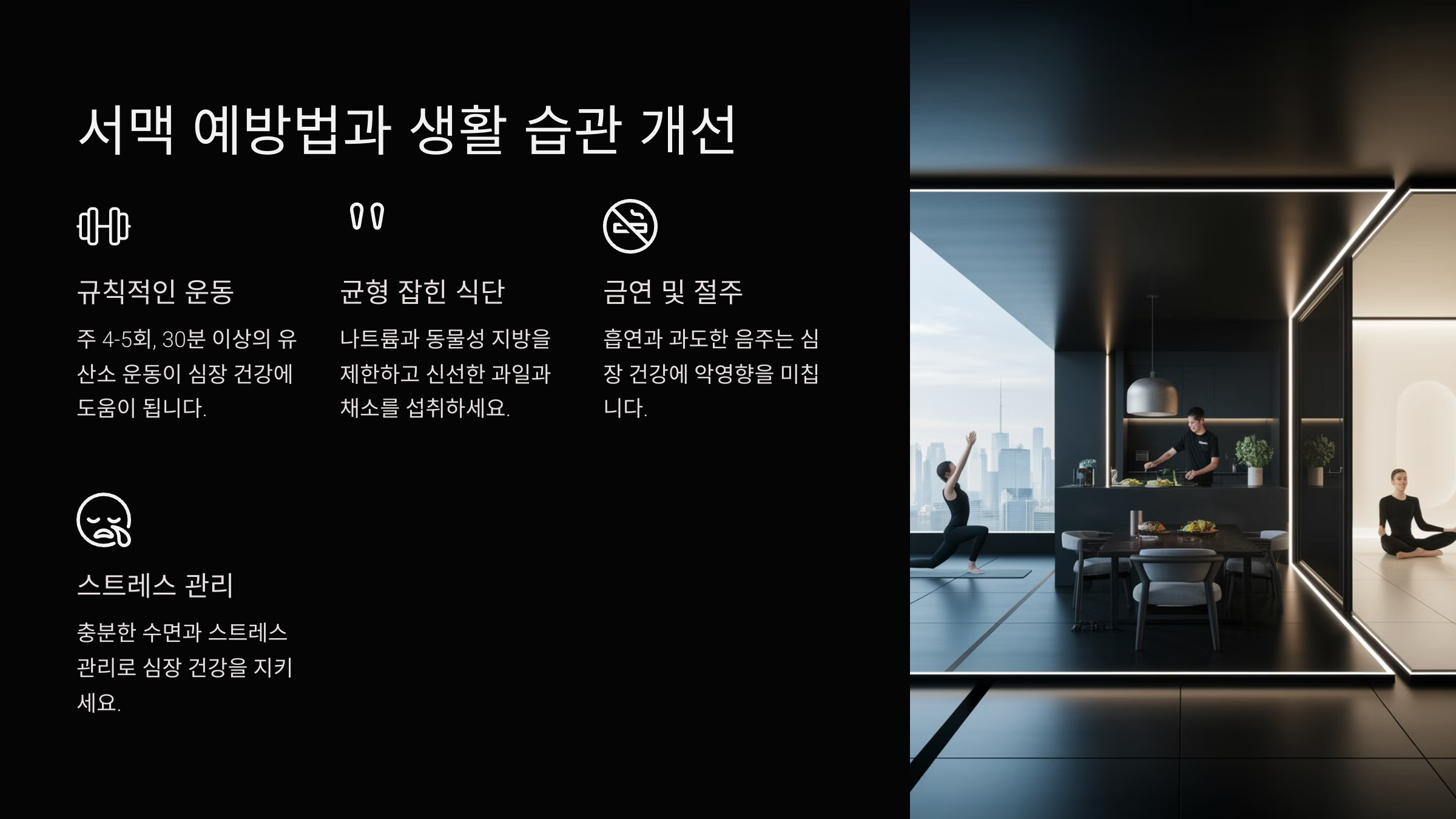 서맥을 예방하고 건강한 심장을 유지하려면 규칙적인 운동과 균형 잡힌 식습관이 중요해요. 특히 나트륨과 지방 섭취를 줄이고, 심장 건강에 좋은 음식을 섭취하는 것이 좋아요.