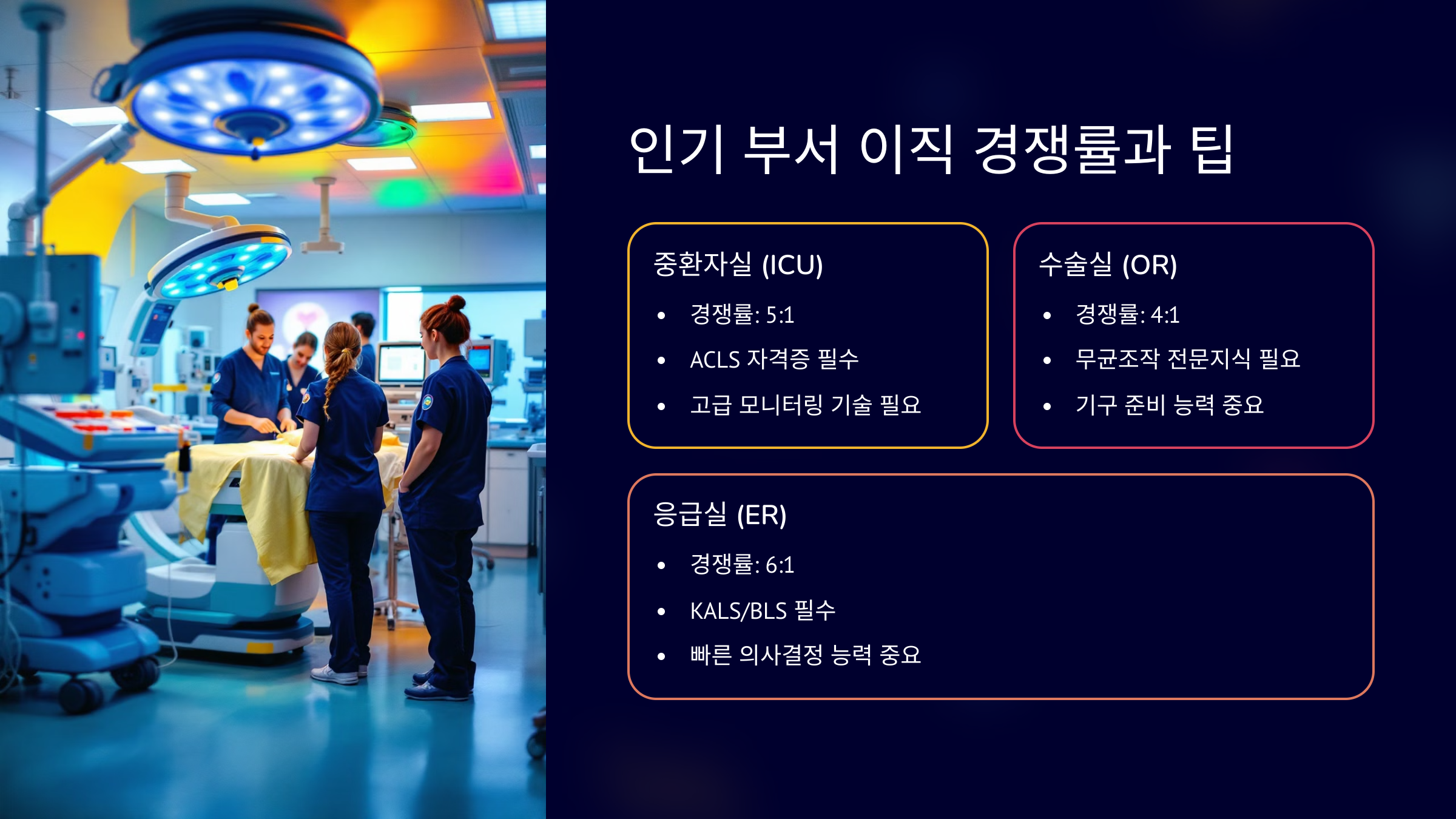 간호사 이직에서 가장 경쟁률이 치열한 부서는 단연 '외래', '수술실', 그리고 '내시경실'이에요. 환자 밀접도가 낮고 정시 퇴근률이 높다 보니, 워라밸을 중시하는 간호사들이 이 부서를 우선순위로 꼽아요.