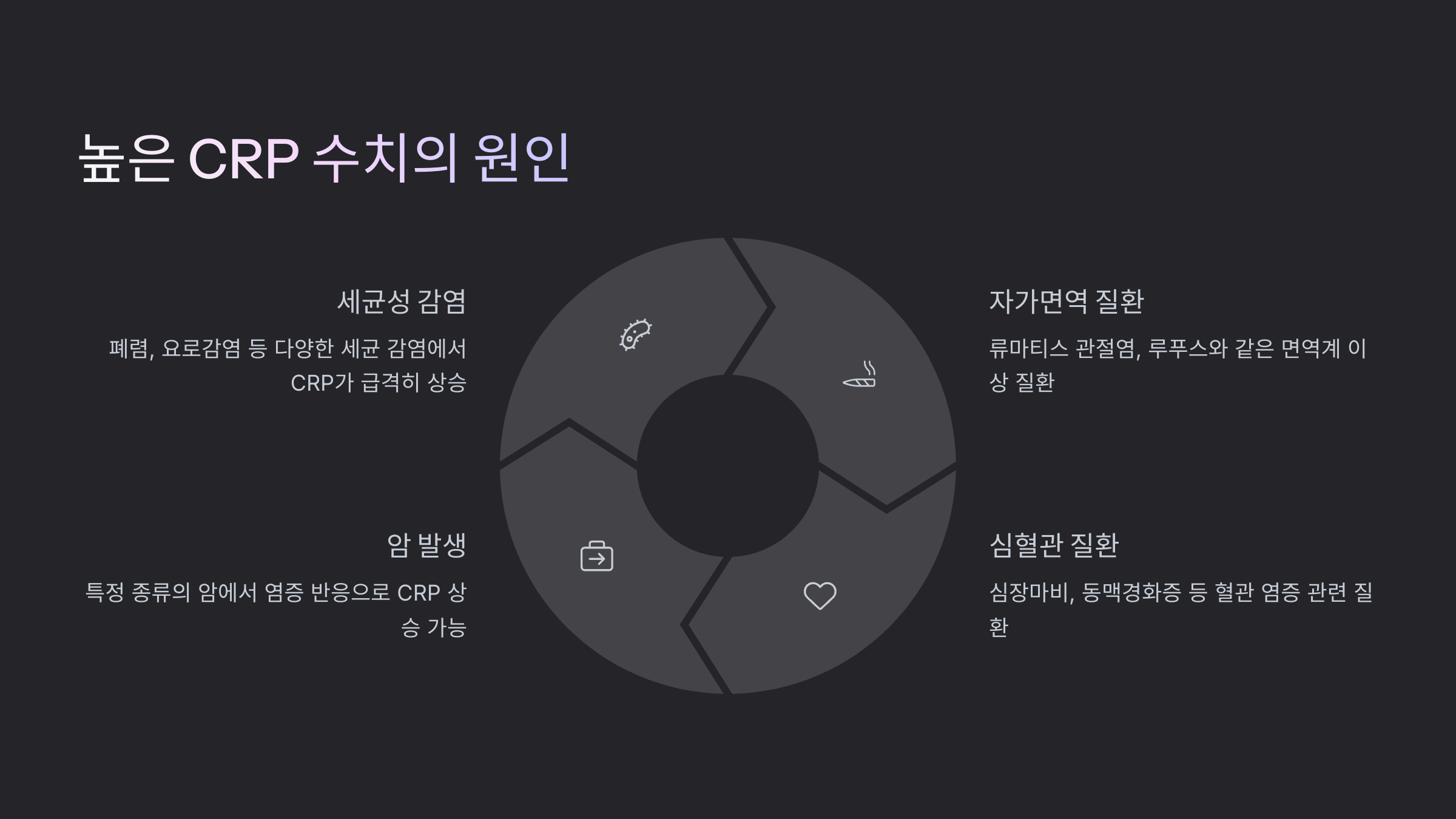 다음 섹션에서는 CRP 수치가 높을 때 의심되는 다양한 원인에 대해 알려드릴게요. 🧠 궁금하시죠?