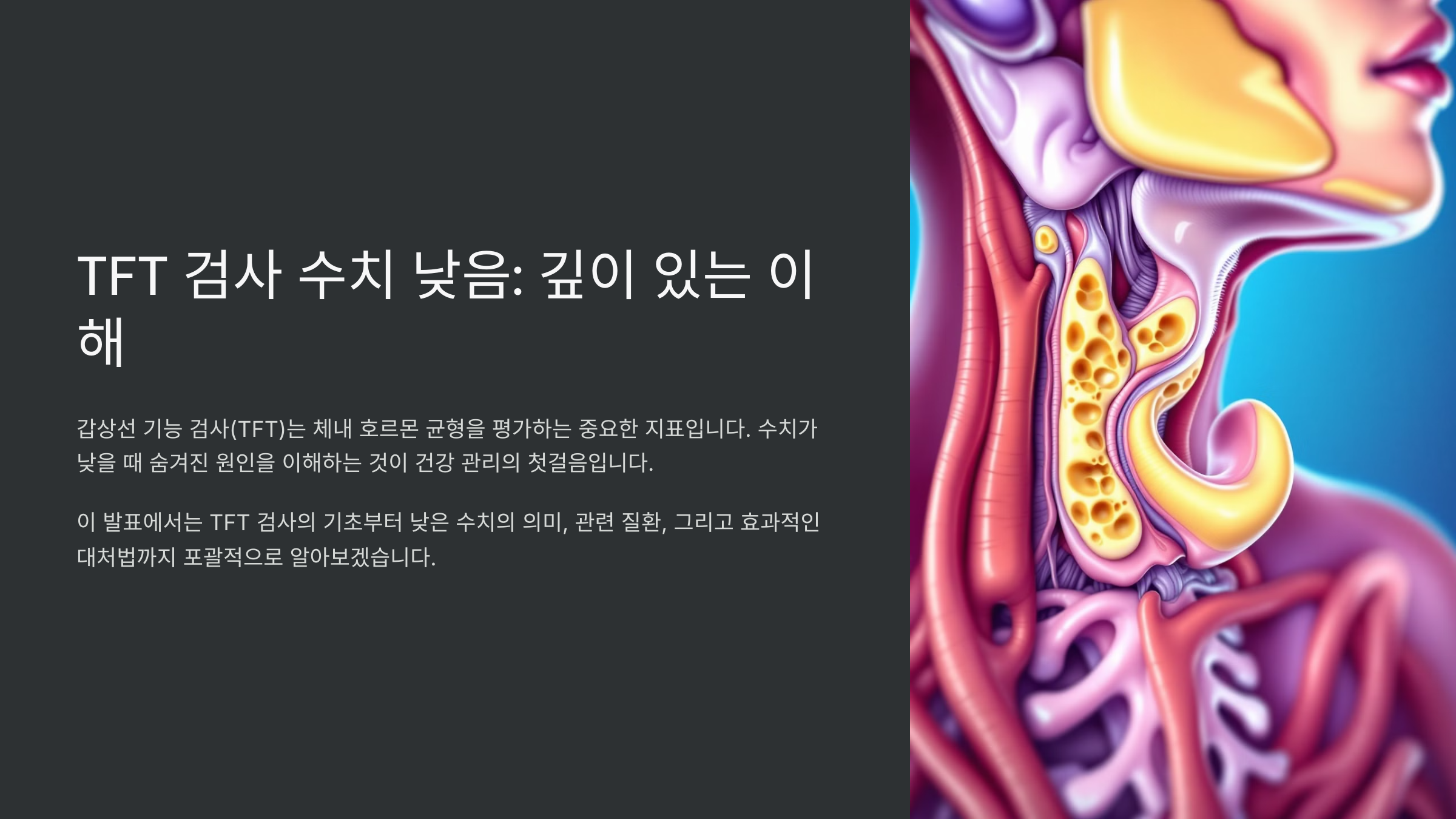 갑상선 기능검사(TFT)는 우리 몸의 대사 조절과 밀접하게 연결된 중요한 검사예요. 이 검사를 통해 TSH, FT3, FT4라는 주요 호르몬 수치를 확인할 수 있는데, 특히 이 수치가 '낮다'는 결과를 받으면 많은 분들이 걱정부터 하게 돼요.