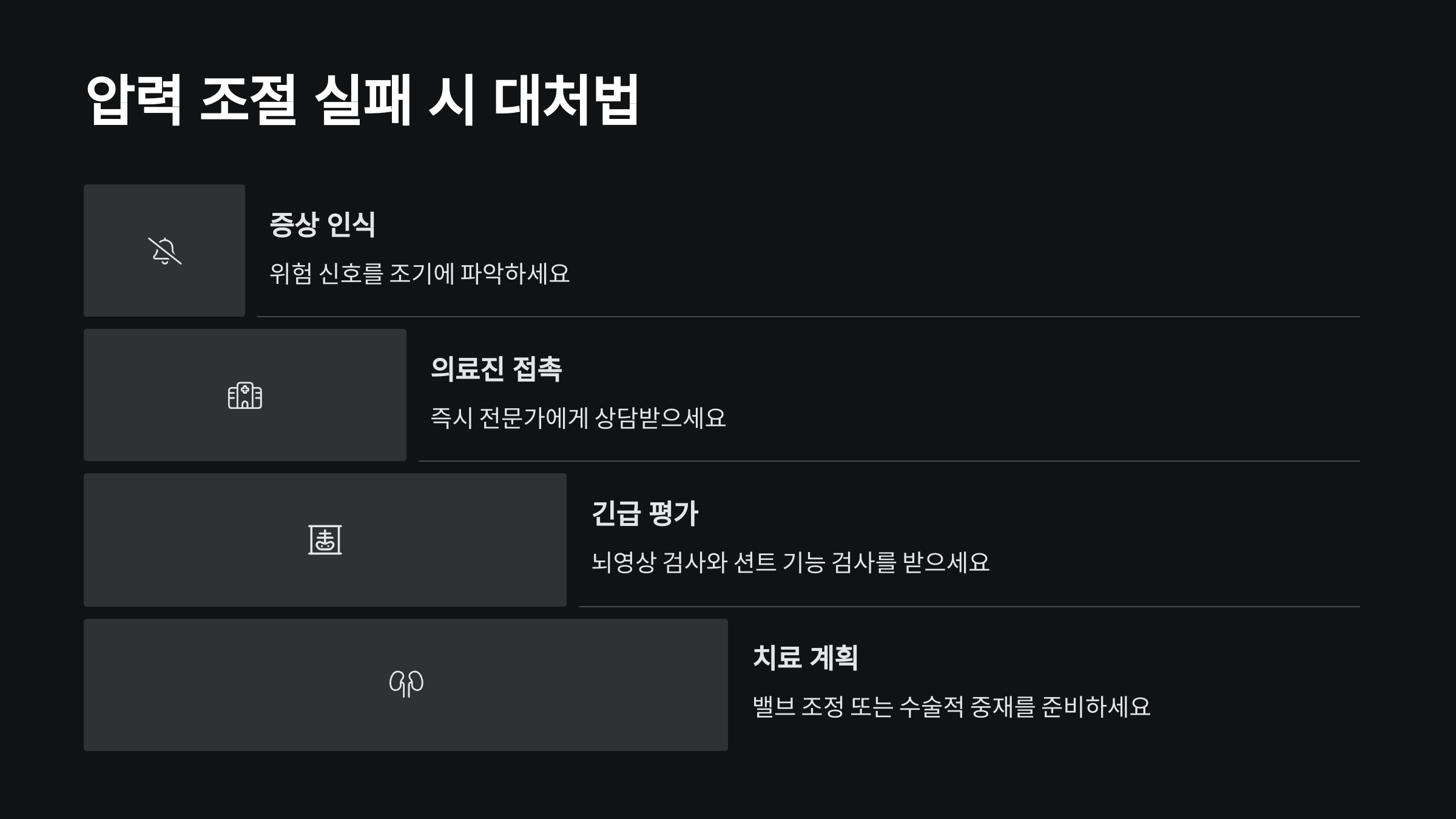 V-P 션트의 압력 조절이 실패했을 때는 빠르고 정확한 대처가 필요해요. 압력 문제로 인한 합병증은 치명적일 수 있기 때문에, 병원에서는 다양한 단계별 접근법을 통해 문제를 해결해 나가요.