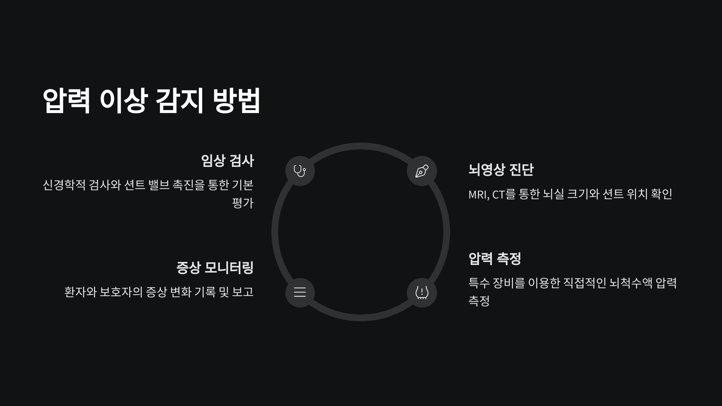 V-P 션트에서 압력 이상을 감지하는 건 정말 중요해요. 간단한 신체 증상으로는 놓치기 쉬운 경우가 많아서, 다양한 진단 도구와 방법을 병행해야 해요. 특히 영상 검사와 직접적인 압력 측정이 핵심이죠.